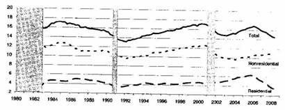 رشد اقتصادی شروع به کاهش کرد. روند نزولى رشد